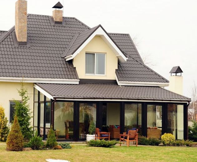 Чтобы сохранить стилистическое единство, обычно выбирается тот же кровельный материал, что и для основного дома. Организация примыкания и форма кровли будут зависеть от того, к какой стене пристраивается веранда.